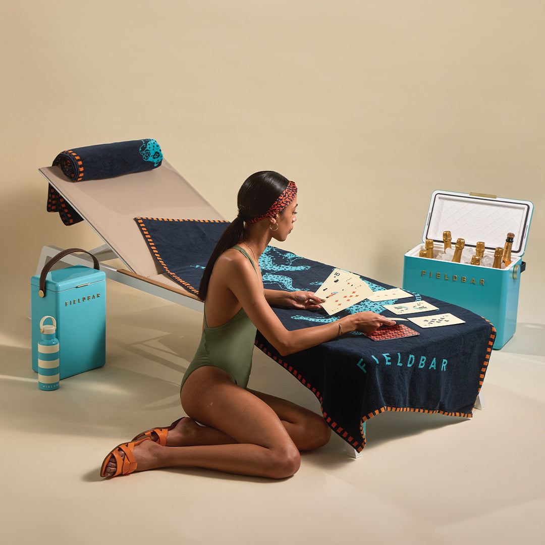 The ultimate FIELDBAR bundle includes a Drinks Box, Gin Trunk, Field Bottle and Seabed Beach & Bath Towel.