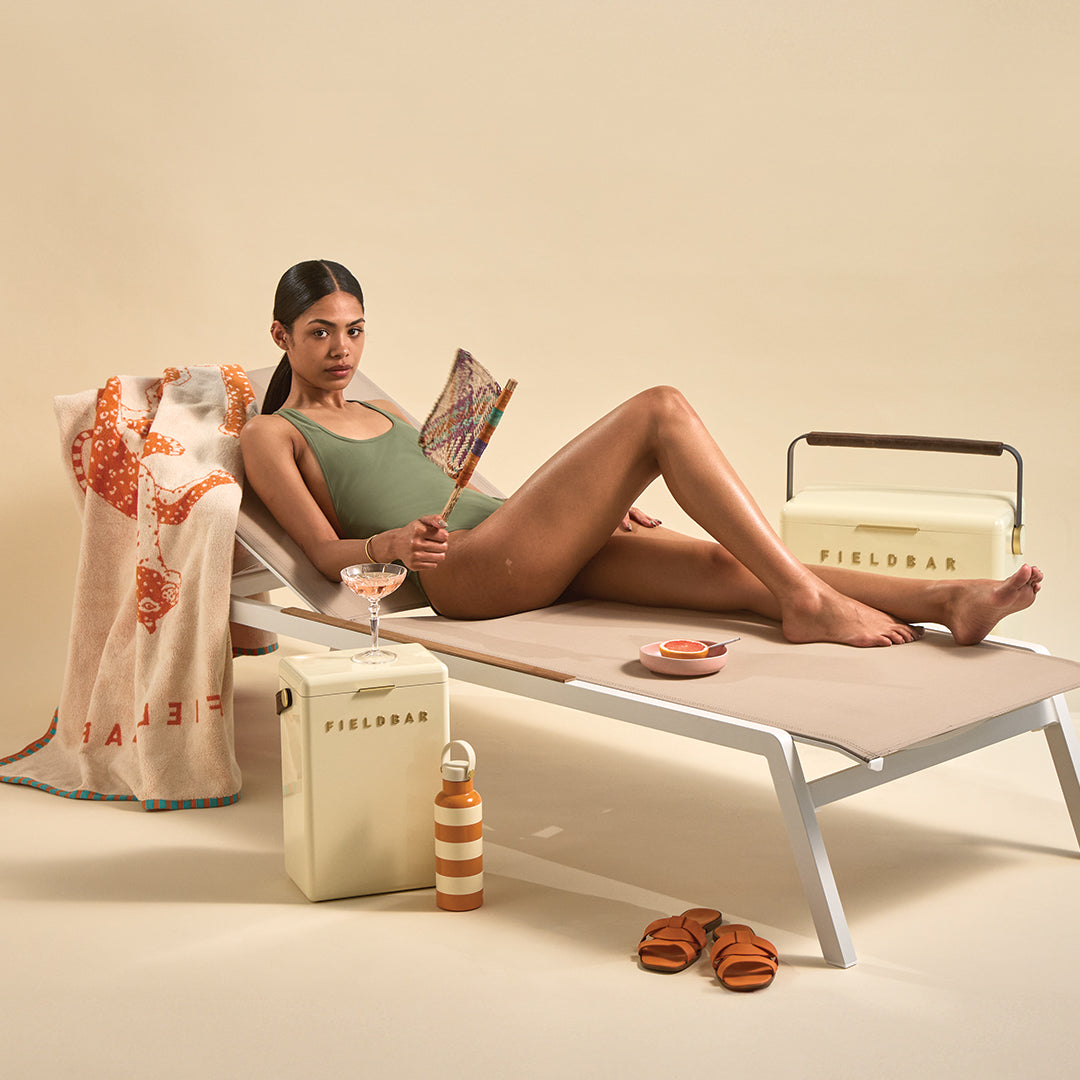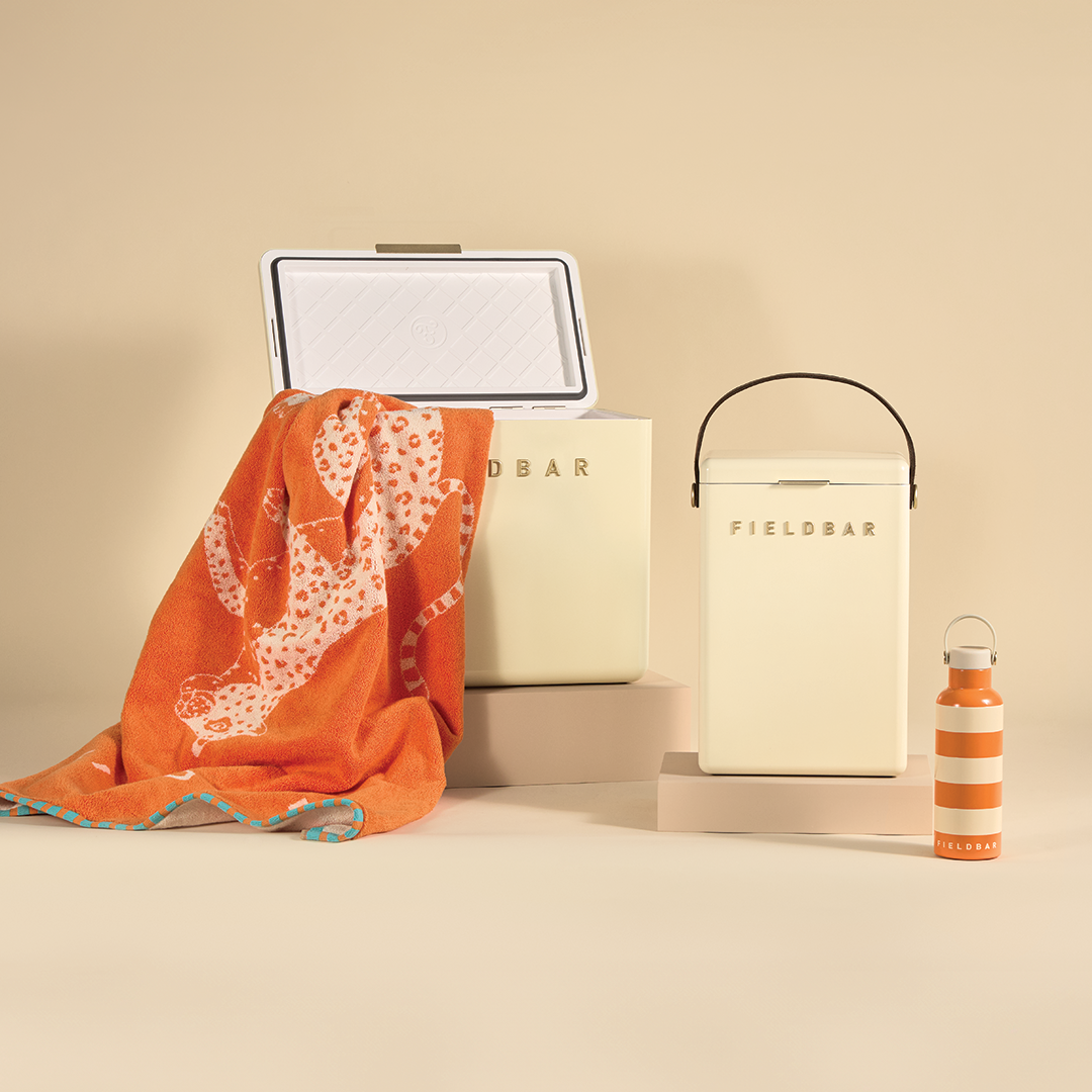 The ultimate FIELDBAR bundle includes a Drinks Box, Gin Trunk, Field Bottle and Seabed Beach & Bath Towel.